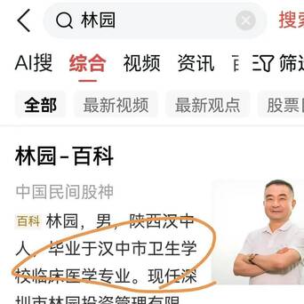谁也想不到,林园是中专生,毕业于汉中卫生学校临床医学专业,毕业工作大概是包分配做护士的,跟股票一点不沾边,不知道他后来有没有去学金融晋升学历。他是三人中唯一没有本科学历的,也是“草莽英雄”的代表。